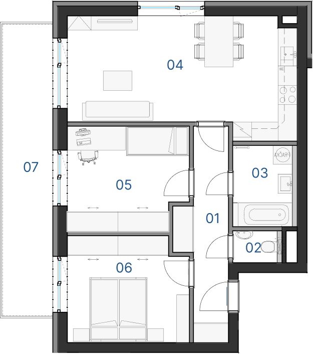 04 Obývací pokoj + Kuchyň 24,93 m2
