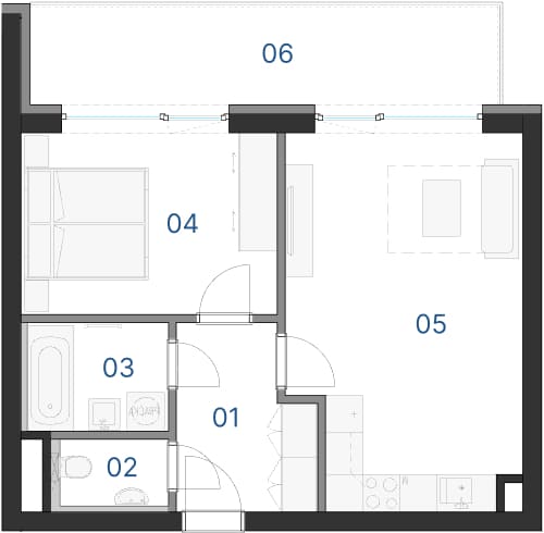 05 Obývací pokoj + Kuchyň 21,86 m2